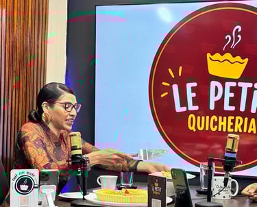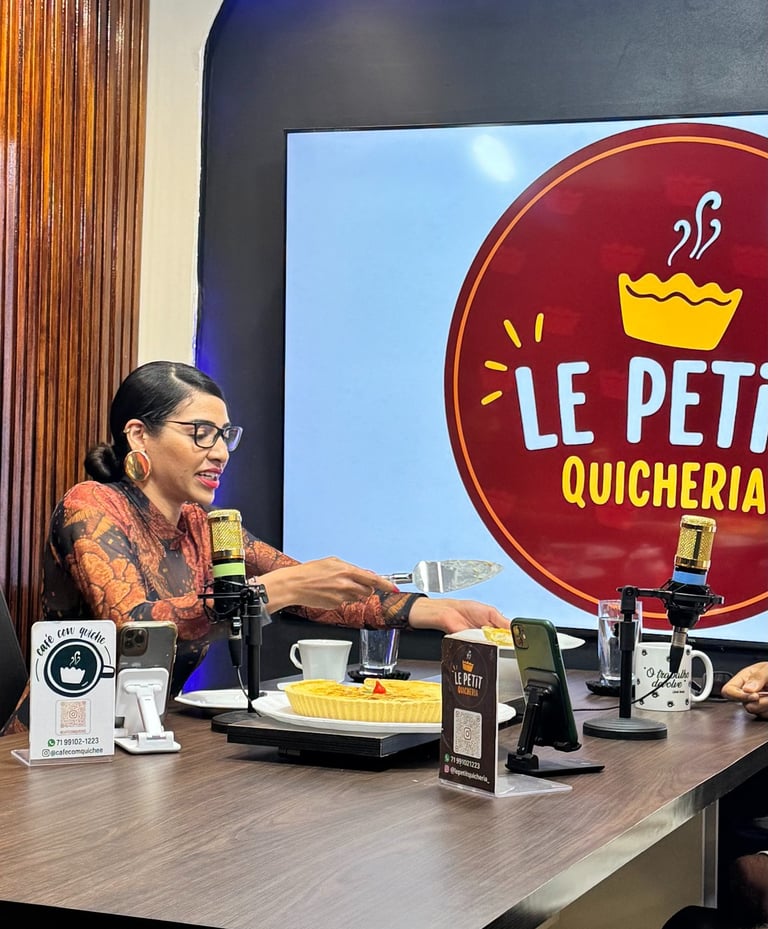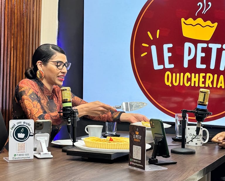 Mas sua influência vai além do forno: ela é a fundadora do Café com Quiche, a comunidade que cresceu organicamente para debater gastronomia e empreendedorismo. E como host do podcast de mesmo nome, ela consolida sua posição como uma das principais vozes do setor.